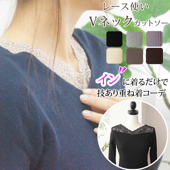 レース 伸縮 肌隠し Vネック 長袖 レース カットソー 着回し カットソー 長袖tシャツ 上着 ク・・・