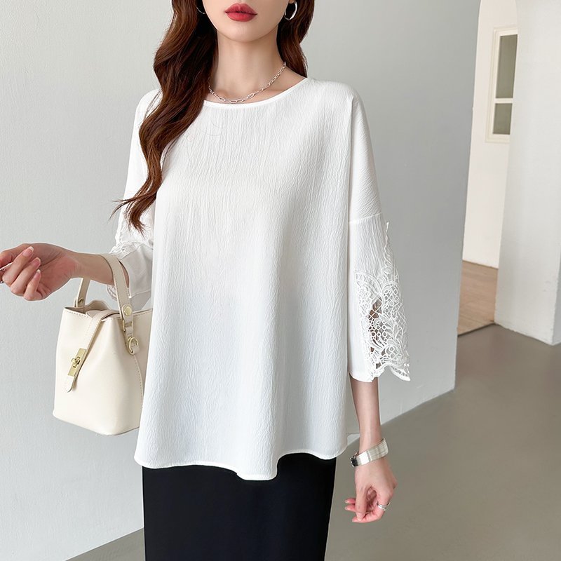 COCOMOMO 袖レースブラウス チュニックブラウス ゆったり体型カバー ブラウス 七分袖 ココモ・・・