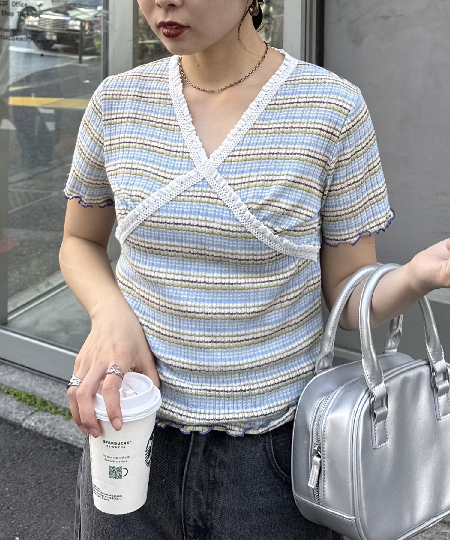 【SALE/44%OFF】ヘンリーレース付プレートロゴリブトップス INGNI イング トップス カ・・・
