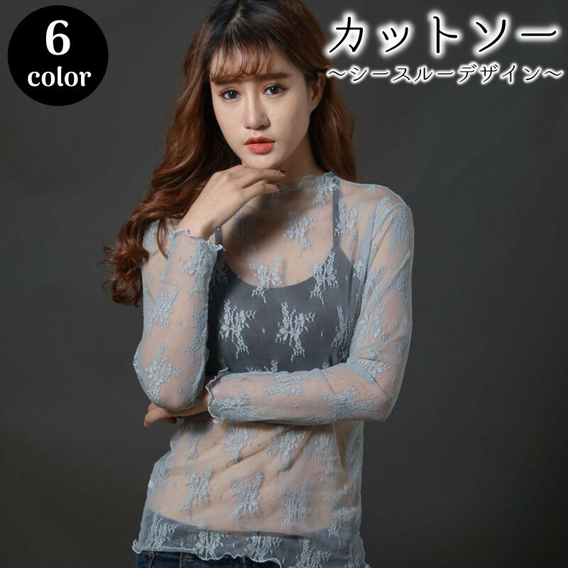 送料無料 カットソー シースルー シアートップス レディース インナー メッシュ レース 透け感 お・・・