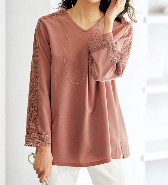 【送料無料】 七分袖 レディース チュニック 袖レース カットソー ブラウス シャツ 綿100% M・・・