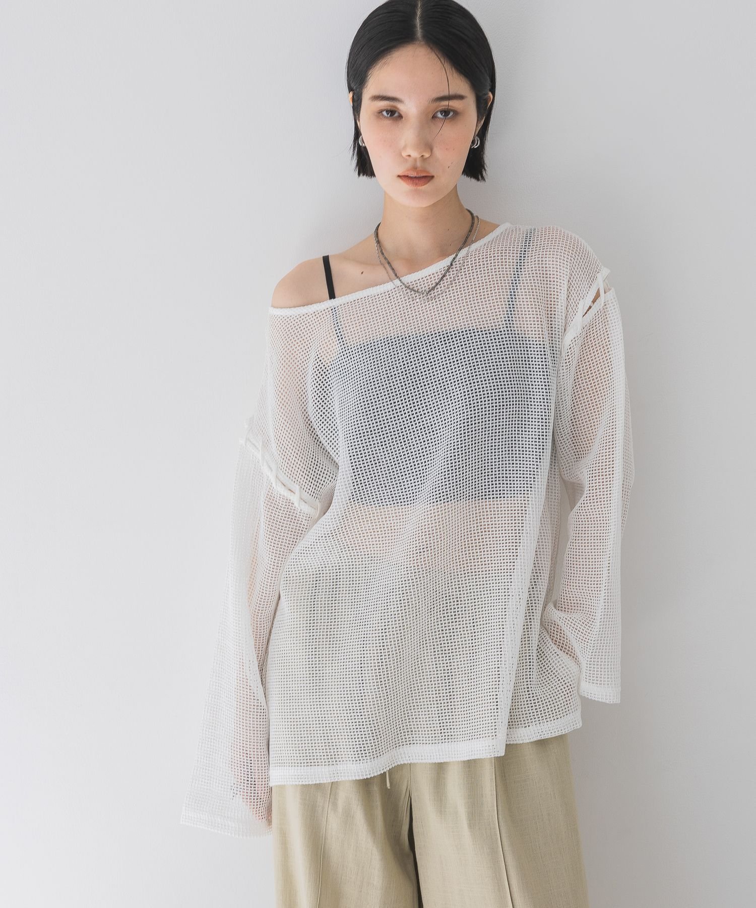 【SALE/70%OFF】JEANASIS レースアップメッシュプルオーバー ジーナシス トップス ・・・