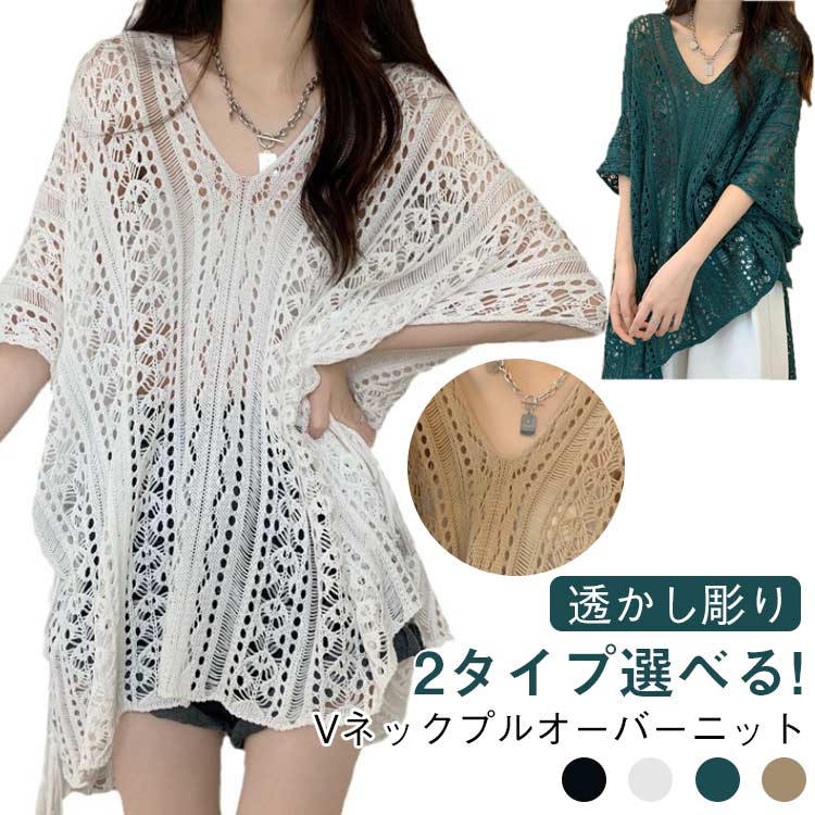 透かし編み サマーニット ニットソー トップス ニット 長袖 ゆったり 無地 半袖ニット シースルー・・・