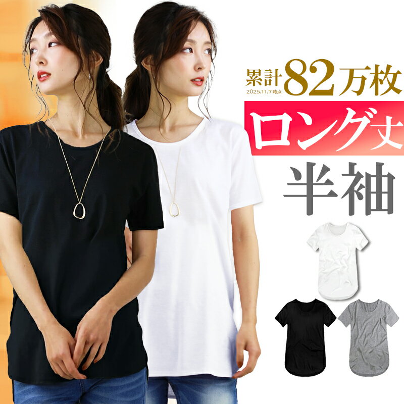 ロング丈 tシャツ レディース 半袖 無地 薄手 カットソー ロングtシャツ ロンt チュニック ク・・・