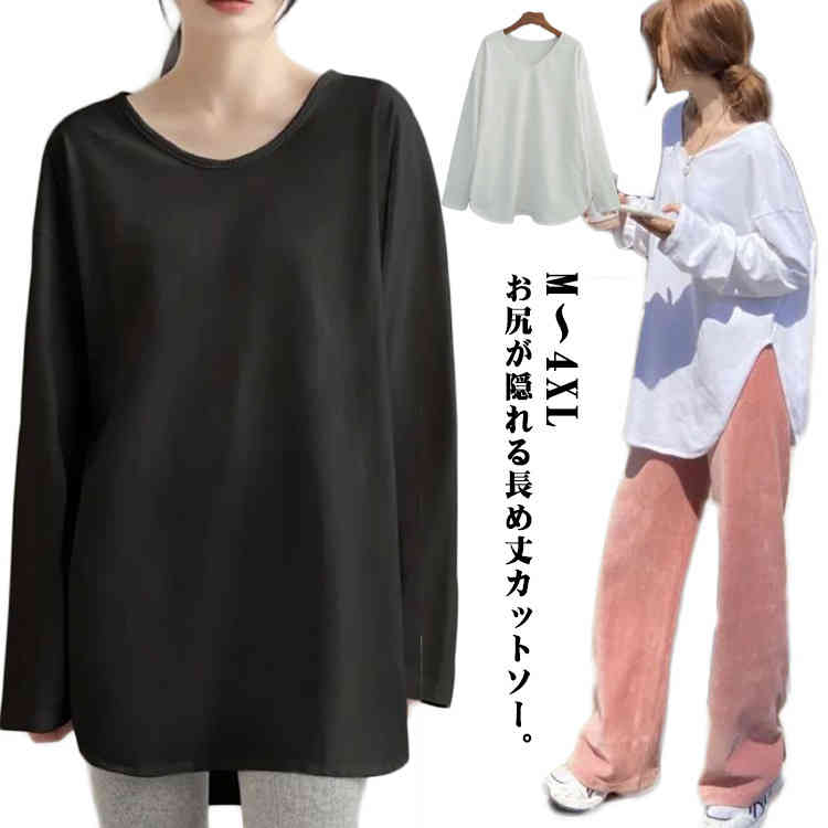 パーフェクト・シルエット絶妙丈で 体型カバー トップス レディース カットソー ロンT ロングTシャ・・・