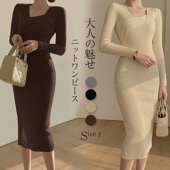 タイトワンピース ニットワンピース レディース ワンピース 秋冬 タイト タイトワンピ 無地 ニット・・・