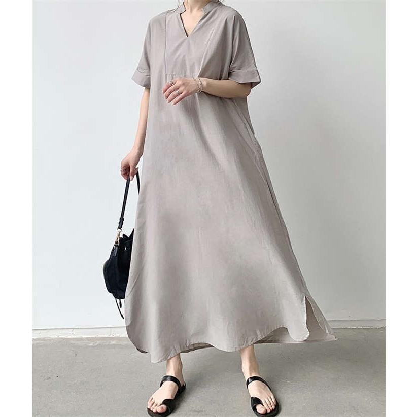 ワンピース レディース ワイド ロング丈 マキシ丈 半袖 ロングワンピース 春 夏 秋 無地 シンプ・・・