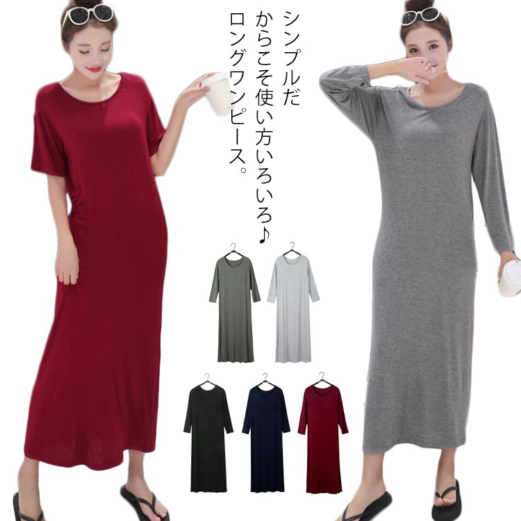 マキシワンピース レディース ロングワンピース 2タイプ 長袖 半袖 マキシ丈 カットソー ワンピー・・・