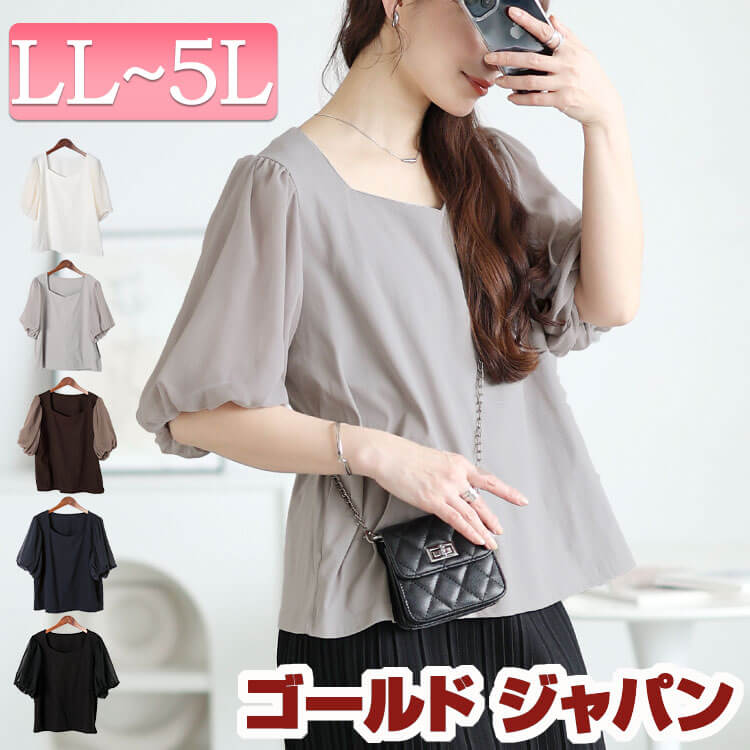 大きいサイズ レディース トップス カットソー シフォンバルーンスリーブプルオーバー 5分袖 バルー・・・