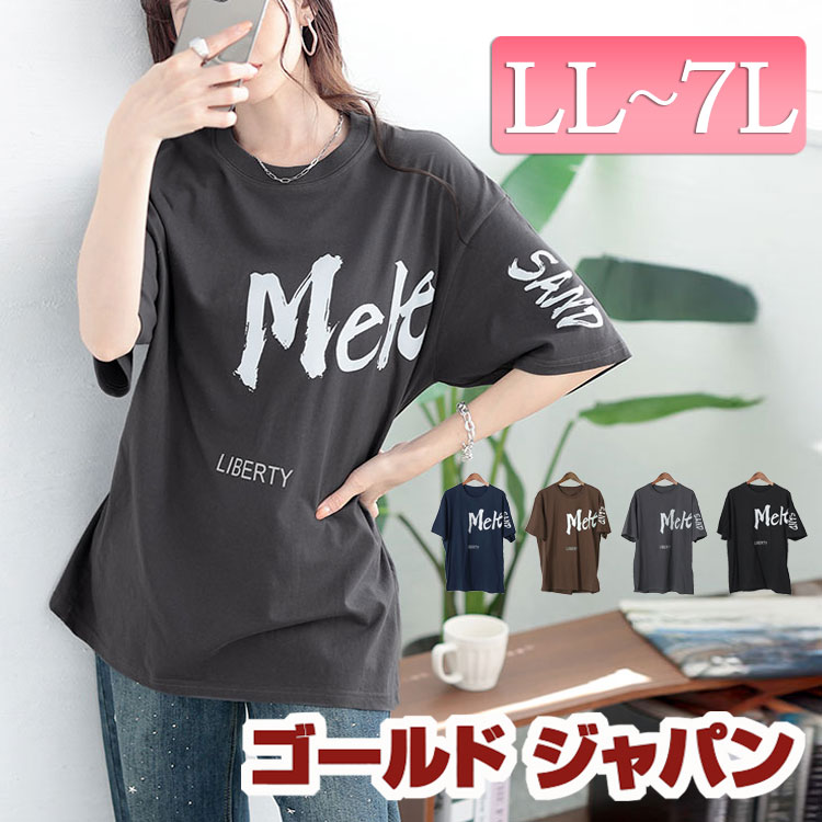 大きいサイズ レディース トップス Tシャツ カットソー ビッグロゴコットンTシャツ ラウンドネック・・・