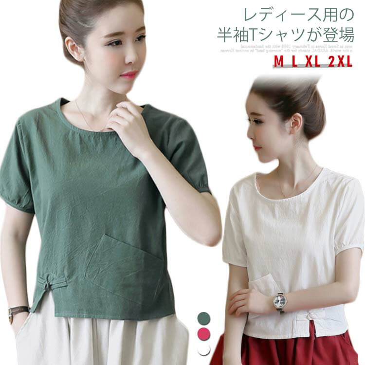 半袖Tシャツ レディース 薄手 Tシャツ 半袖 エスニック風 カットソー 丸襟 女性用 レトロ トッ・・・