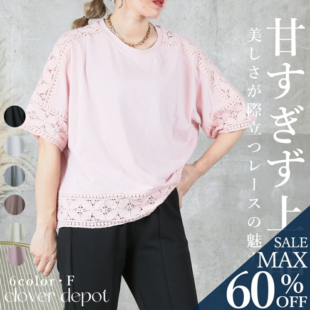 <23:59迄60%クーポンで1432円!2点~>即納 tシャツ 半袖 刺繍 袖 袖レース カットソ・・・