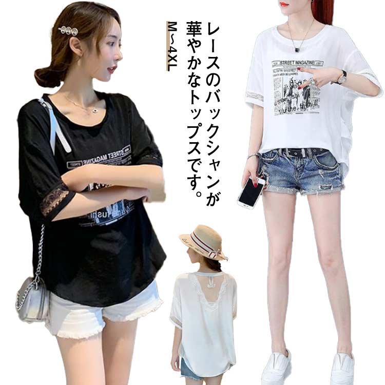 カットソー 五分袖 バックシャン 大きいサイズ シャツ ブラウス 英字プリント 五分袖 プルオーバー・・・