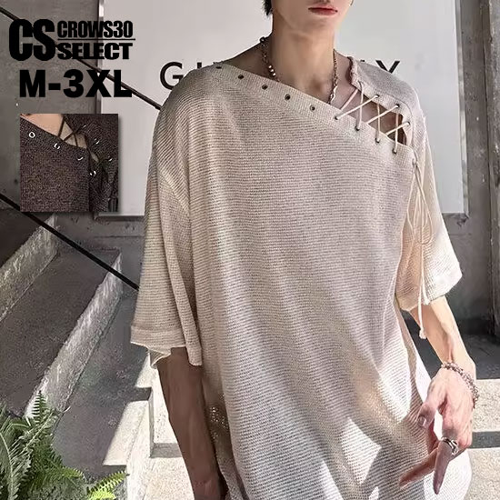 V系 Tシャツ メンズ V系 メンズ カットソー メンズ モード系 tシャツ メンズ レースアップ ・・・