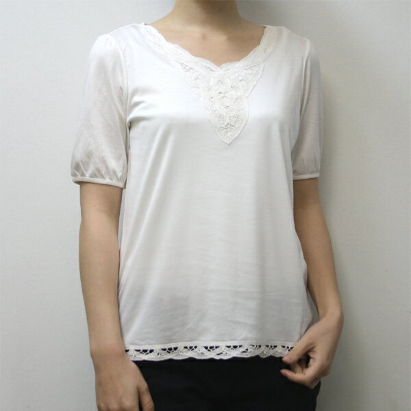 レディース スムースバイオシルケット レース使いプルオーバー(中国製) カットソー Tシャツ トップ・・・