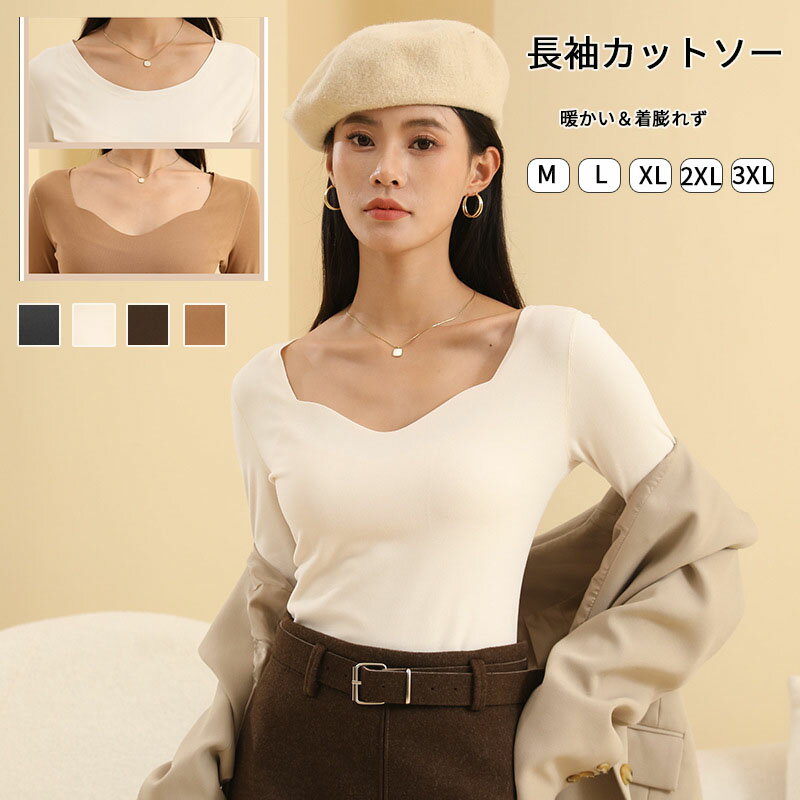 カットソー レディース カットソー トップス ネックが選べる Tシャツ 長袖 Uネック スクエアネッ・・・