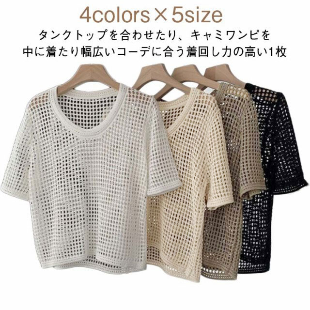 着やせ カットソー 春秋 きれいめ M ゆったり サマーニット トップス 着痩せ プルオーバー かぎ・・・