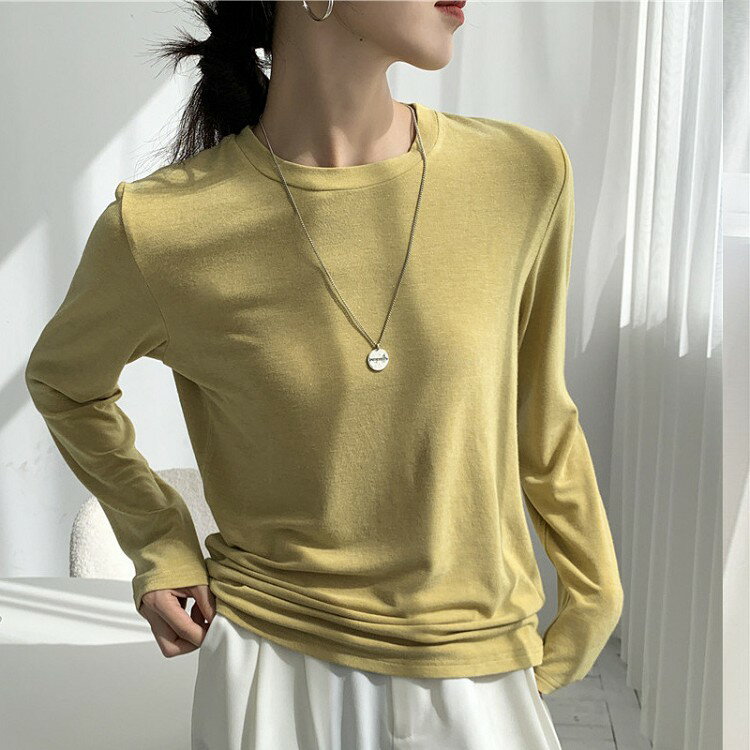 Tシャツ長袖 無地 秋冬 レディース 定番 大きいサイズ クルーネック ストレッチ素材 ブラック 黒・・・