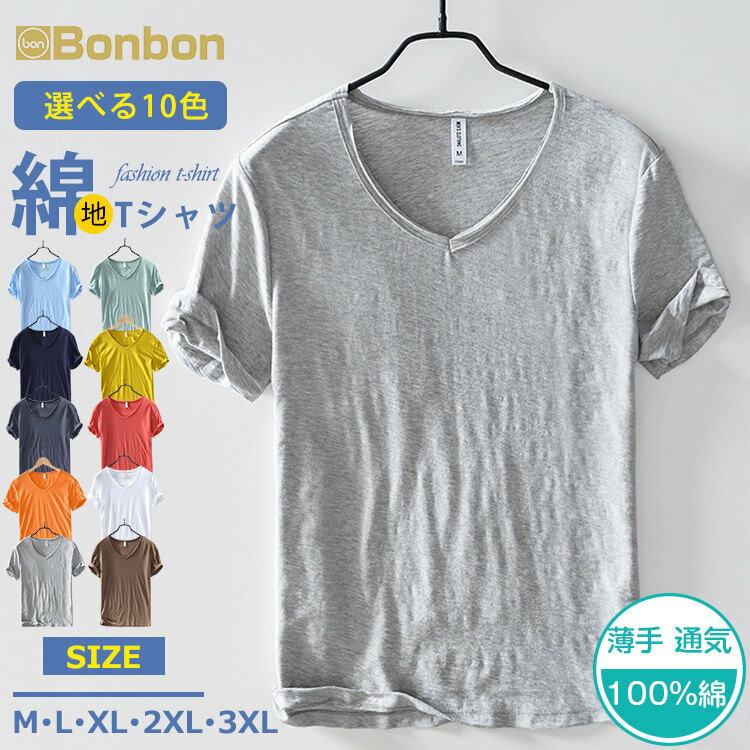 Tシャツ 半袖Tシャツ メンズ コットン100% 無地 薄手 ティーシャツ Vネック 通気性 綿T ・・・