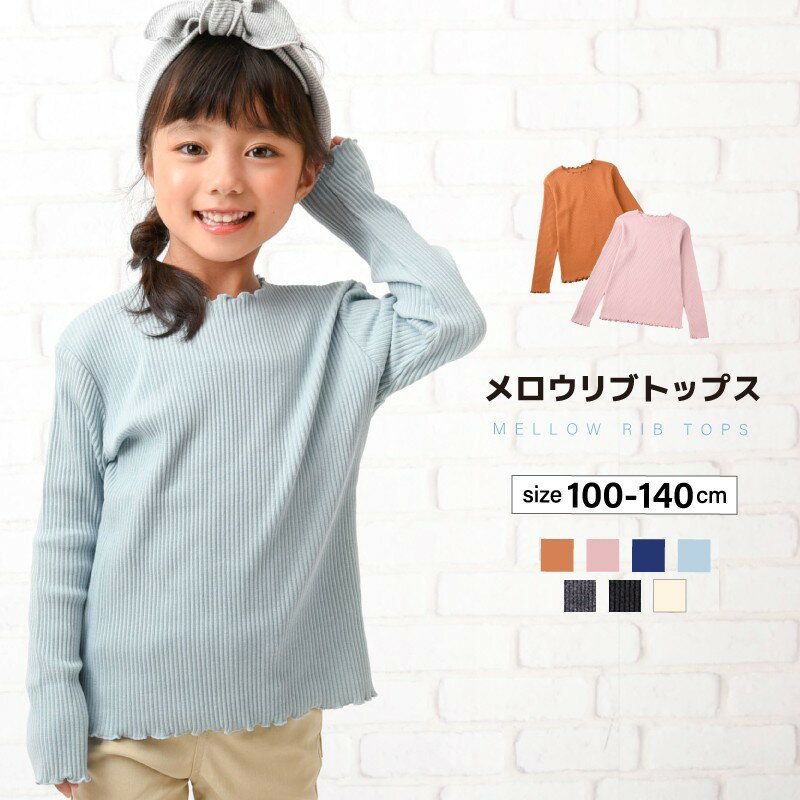 送料無料 リブトップス カットソー 長袖 リブ メロウフリル 子供服 キッズ ベビー 無地 シンプル・・・