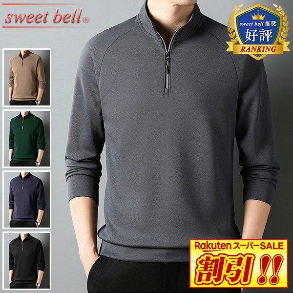 【SALE】ポロシャツ メンズ 長袖 ハーフジップ カットソー トレーナー ジップアップ Tシャツ ・・・
