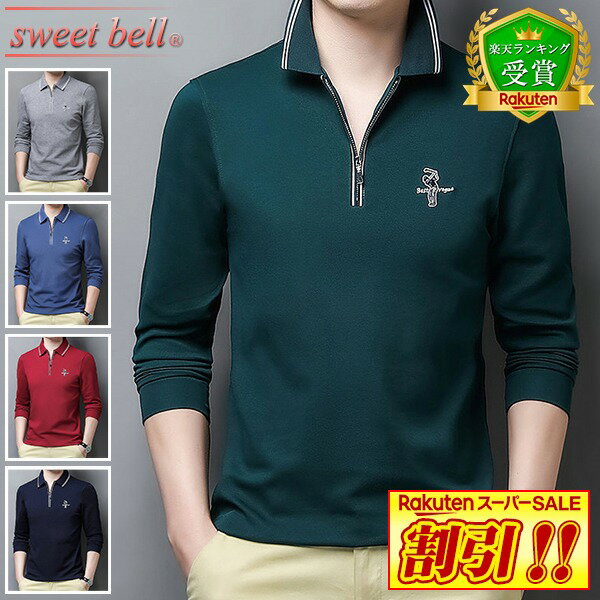 【SALE】ポロシャツ メンズ 長袖 高品質 春 秋 冬 ハーフジップ おしゃれ ゴルフ ブランド ・・・