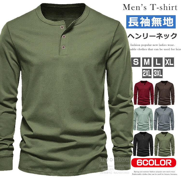 ヘンリーネック Tシャツ 長袖 メンズ 無地 長袖Tシャツ ヘンリーネックTシャツ ロンT 無地Tシ・・・