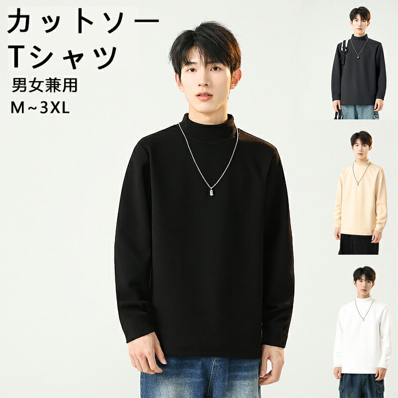 【1点6%、2点11%OFFクーポン】メンズ 長袖Tシャツ カットソー ロンT 無地 ハイネック タ・・・