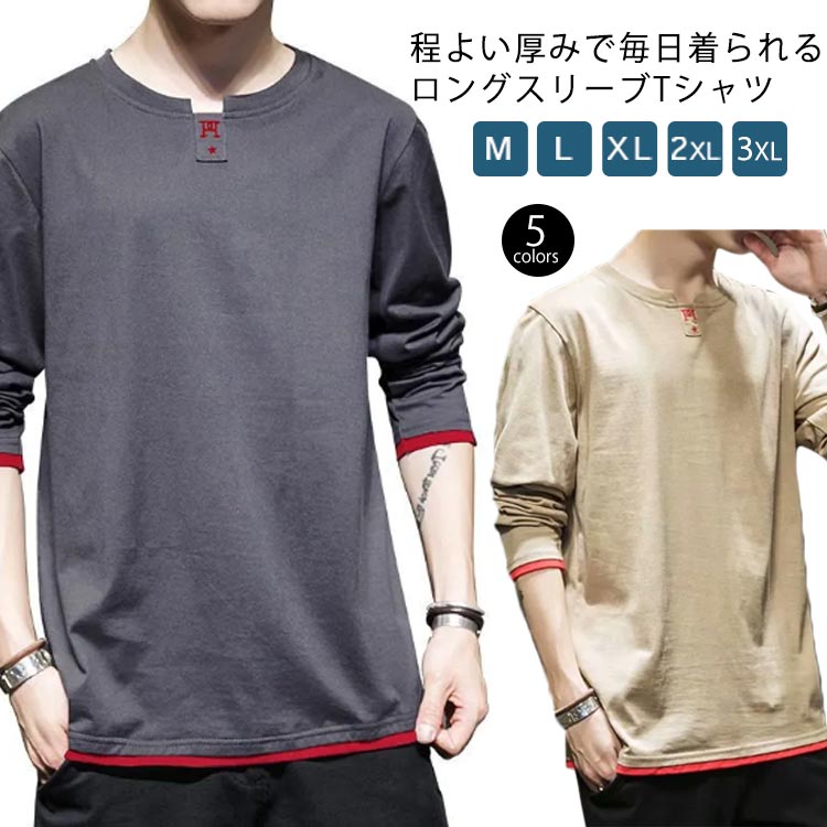 ヘンリーネック 長袖 メンズ 厚手 | S~XL 全2色 国産 ロンT カットソー トップス 春 秋・・・