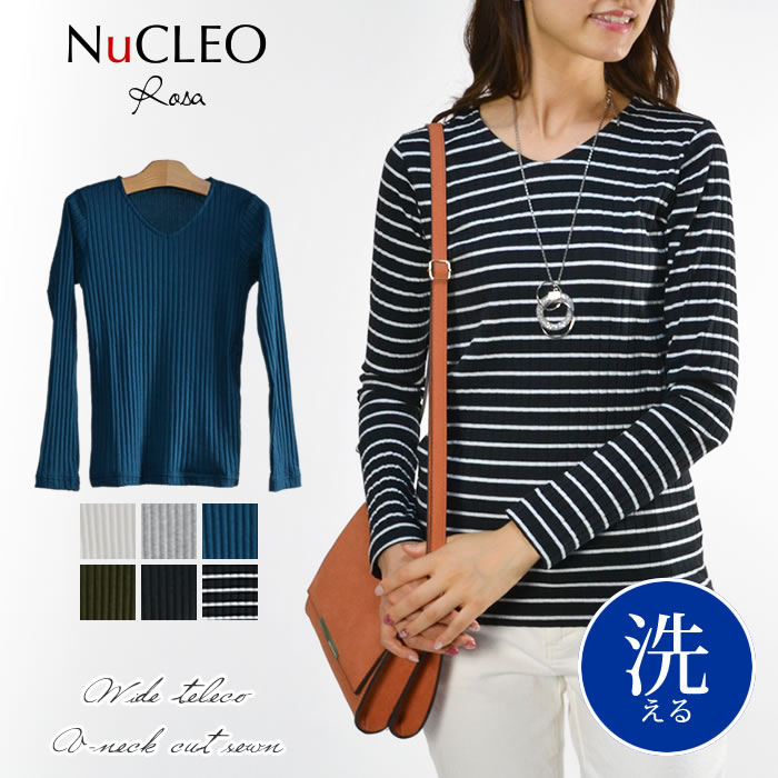 【1500円ポッキリ 送料無料】ワイドテレコ長袖Vネックカットソー◆カットソー Vネック レディース・・・