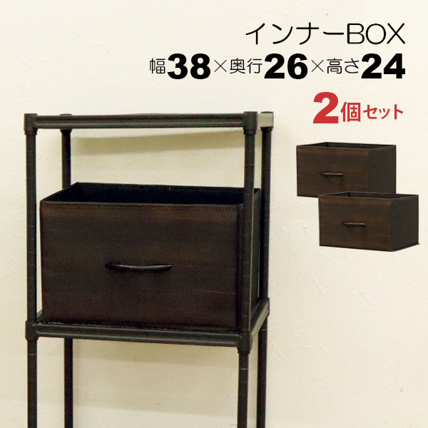 ファブリックインナーボックス 【2個セット】幅38 奥行26 高さ24cm ナチュラル 木目調 前面・・・