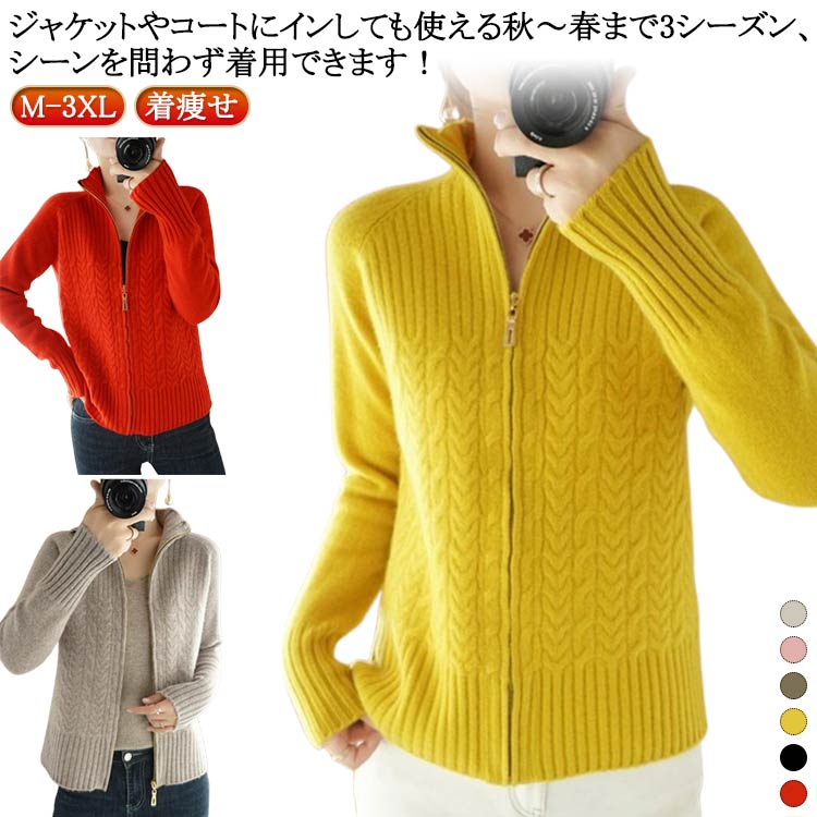 ジップアップ ニットカーディガン ニットパーカー レディース ハイネック 立ち襟 カーディガン ケー・・・