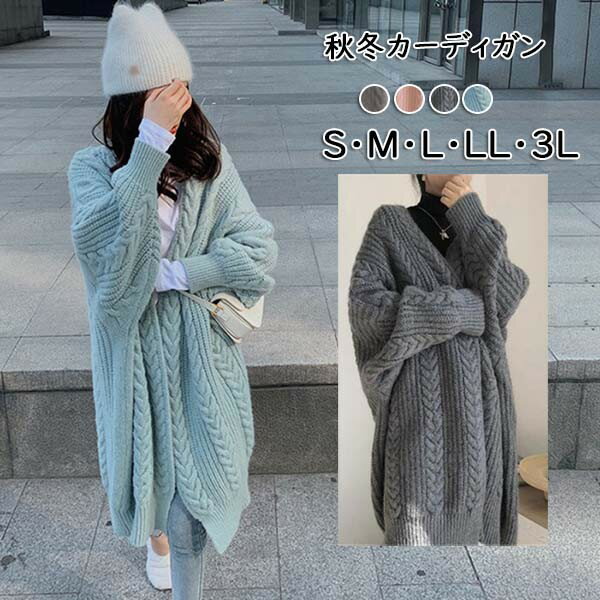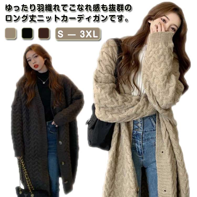 カーディガン 羽織り ロングカーディガン ざっくりニット ニットケーブル編み 羽織り アウター 長袖・・・