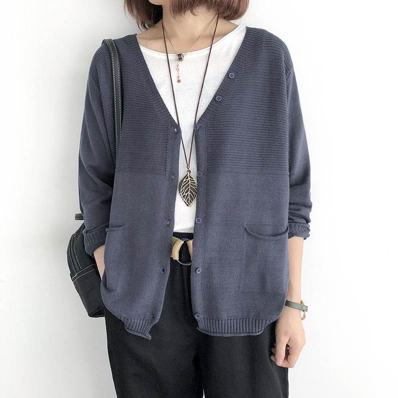 フラワー ボタン ラウンドネック 長袖 ニット プルオーバー カーディガン 女性 レディース トップ・・・