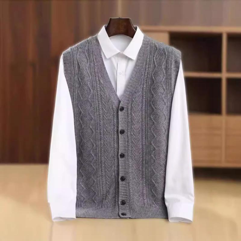 ニットベスト 男性用 Vネック ウール カーディガン 無地 重ね着 セーター カジュアル ビジネス ・・・