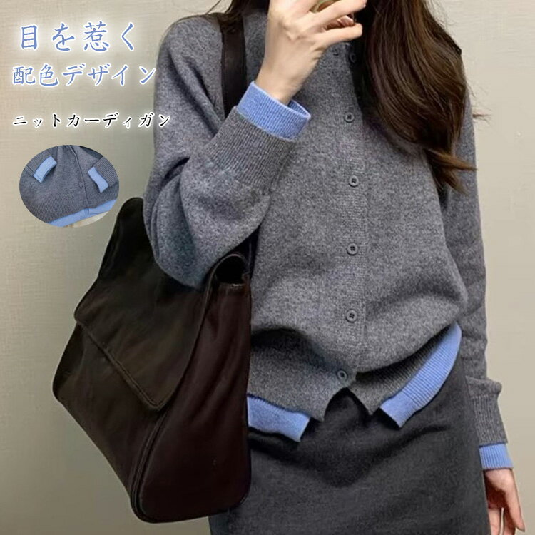 配色 ニット カーディガン レディース 春秋 冬 ニットカーディガン トップス 羽織 アウター カー・・・