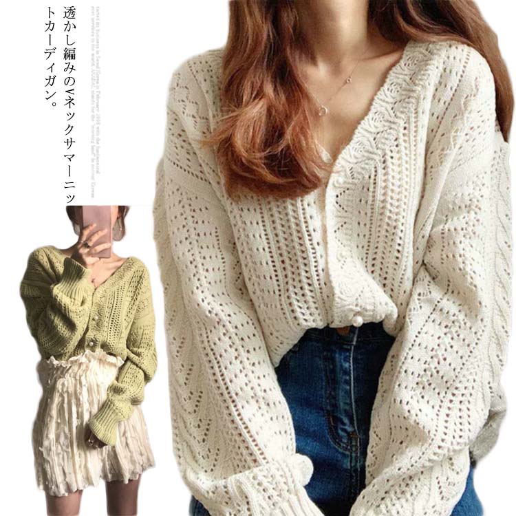 【送料無料】カーディガン サマーニット レディース ニット トップス 透かし編み セーター ケーブル・・・