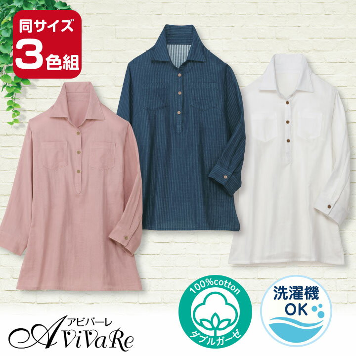即納★ やわらかダブルガーゼ半開ブラウス3色組 [80285-TSS1458-1×3] レディースフ・・・