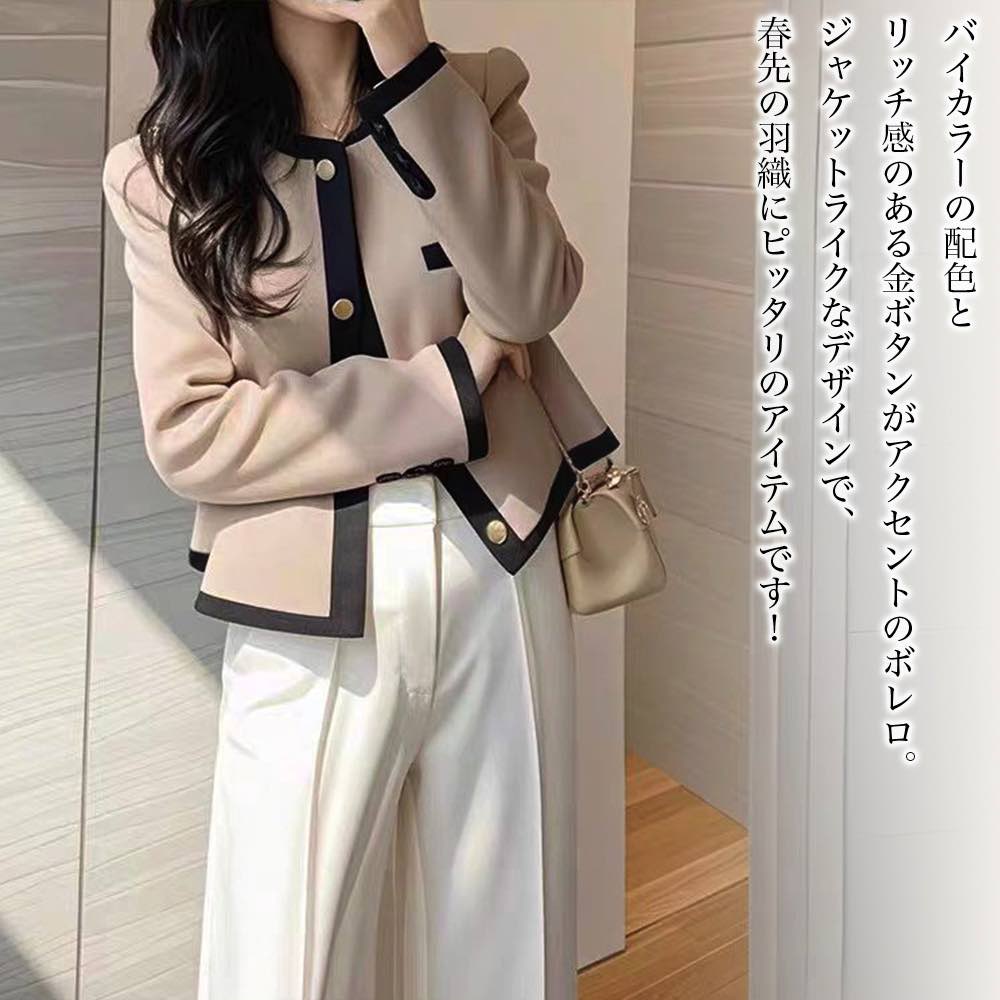 カーディガン レディース バイカラー金ボタンボレロ 人気 きれいめ 秋 ロング ブラック ニット ゆ・・・