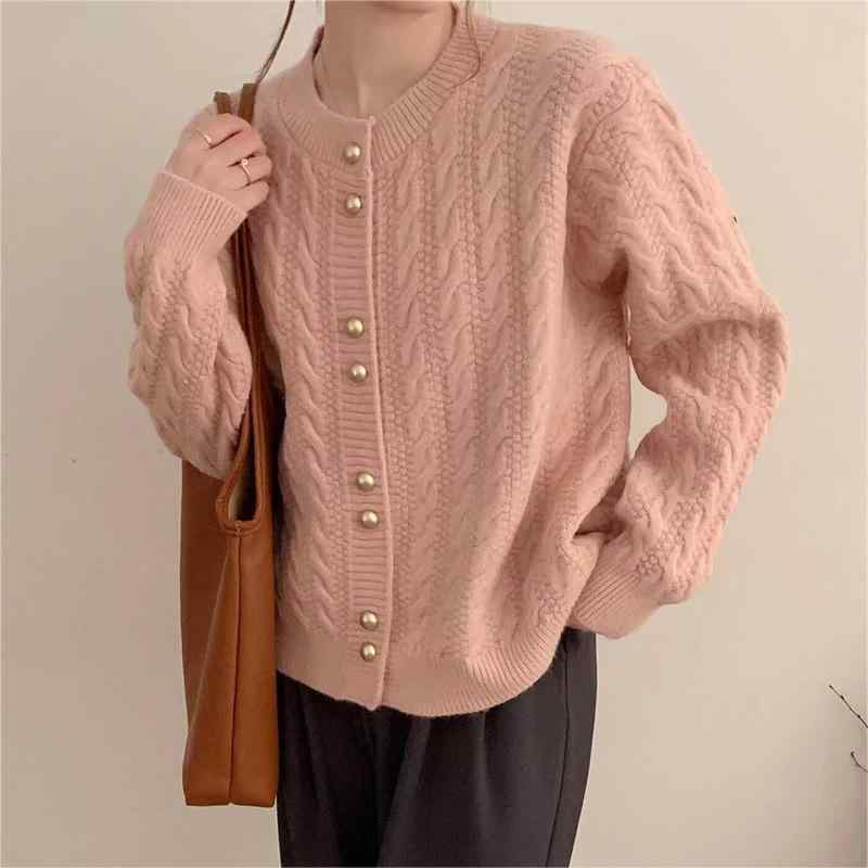 カーディガン レディース 秋冬 ケーブル編み ニット 丸首 厚手 ウールブレンド ゆったり ルーズフ・・・