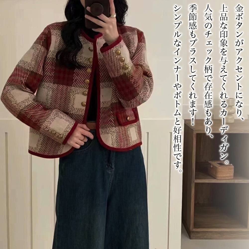 カーディガン レディース 総柄ゴールドボタンボレロ ジャケット ウール 丸首 ゆったり ニット 春 ・・・