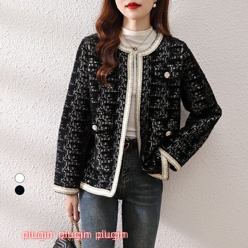 ツイードジャケット コート ジャケット レディース ニットカーディガン ショート丈 ボタン 前開き ・・・