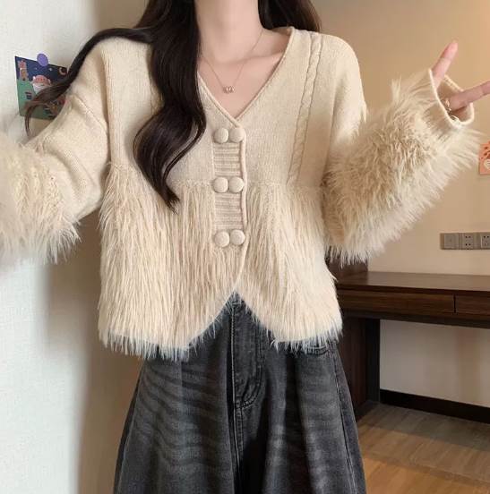 ニットカーディガン レディース 女性用 ミンクファー調 もこもこ Vネック 柔らかな肌触り ゆったり・・・