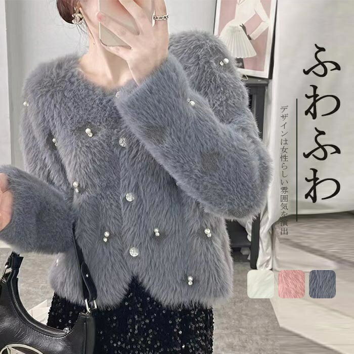 冬新作 エコファー コート カーディガン ショート丈 レディース アウター 大きいサイズ 韓国 オル・・・