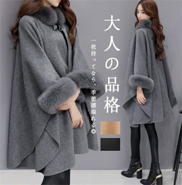 ウール ポンチョ ケープコート レディース 秋冬 ポンチョコート 暖かい 防寒 ウールポンチョコート・・・