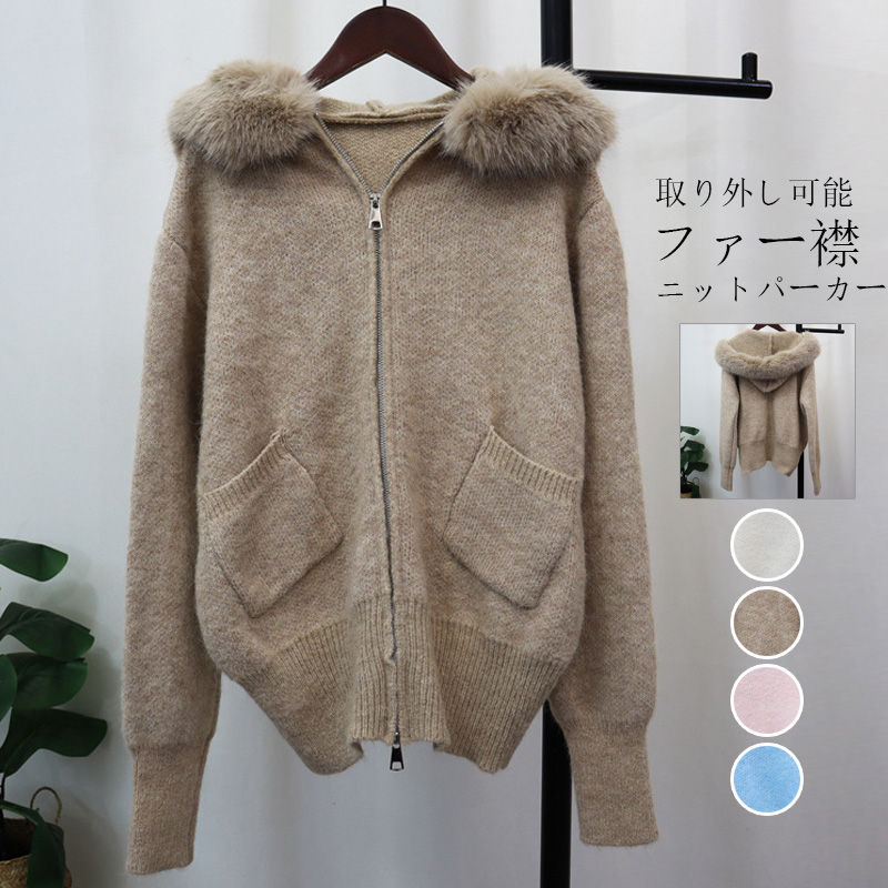 プス 羽織り アウター ショート丈 前開き ファー襟 取り外し ダブルジップ リブ 無地 柔らかい ・・・