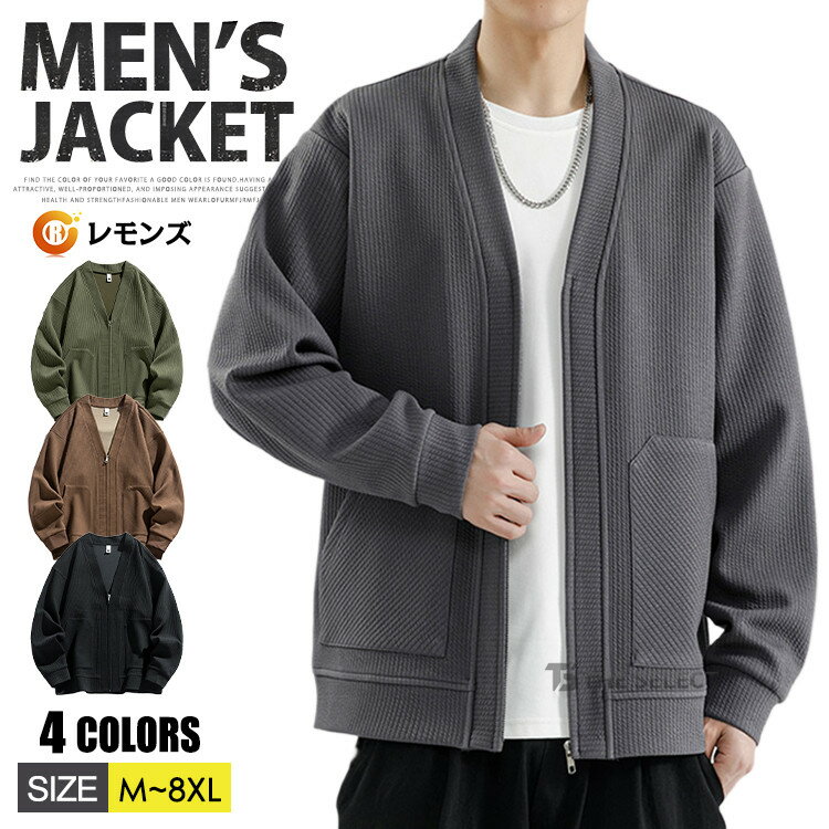 カーディガン メンズ vネック 無地 長袖 ビジネス オフィス カジュアル ジップアップ シンプル ・・・