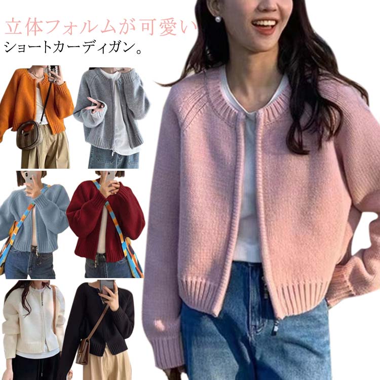 カーディガン レディース 秋冬 長袖 ジップアップ ニットカーディガン ショート アウター ニット ・・・