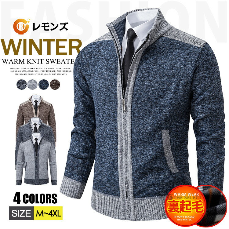 ジップアップ 裏ボア カーディガン メンズ ビジネス ニットカーディガン 裏起毛 切り替え 長袖ニッ・・・