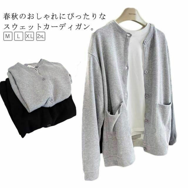 スウェット カーディガン スエット レディース トップス カーデ 羽織り 長袖 秋アウター 丸首 ク・・・
